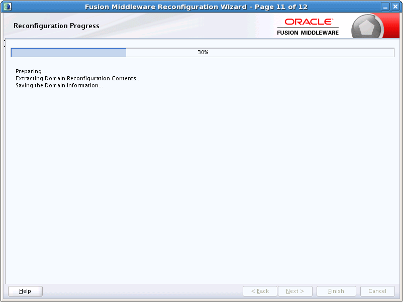 Reconfiguration templates for your installed products, including Fusion Middleware products, are automatically applied. This updates various domain configuration files such as config.xml, config-groups.xml, and security.xml (among others).