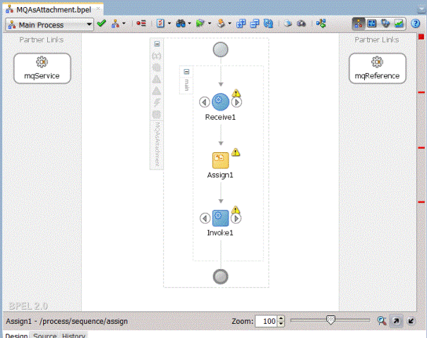 .Click OK in the Assign dialog. The JDeveloper BPELOutboundDequeue.bpel page is displayed.