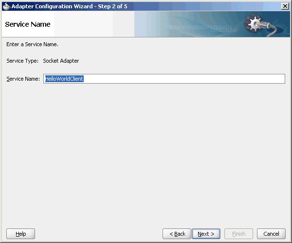 This wizard enables you to configure an Oracle Socket Adapter. The Adapter Configuration Wizard then prompts you to enter a service name, as shown in Figure 5-3.