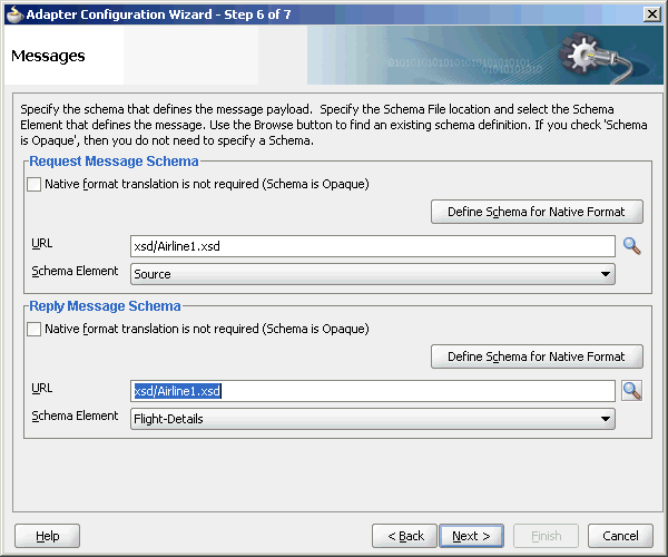 When configuration is complete, a WSDL file of the same name is created in the Application Navigator section of JDeveloper. This WSDL file contains the configuration information you specify in the Adapter Configuration Wizard.