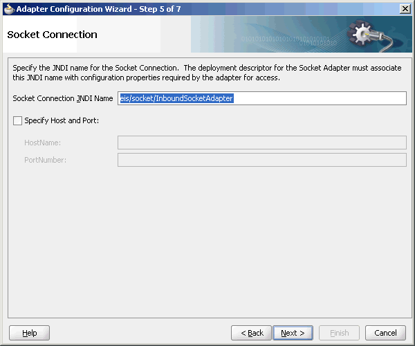 Oracle Socket Adapter is a JCA 1.5 compliant adapter for modeling standard or nonstandard protocols for communication over TCP/IP sockets. You can use an Oracle Socket Adapter to create a client or a server socket, and establish a connection. The data that is transported can be text or binary.