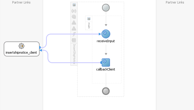 The required source files including bpel and wsdl, using the name you specified (for example, InsertShipNotice.bpel and InsertShipNotice.wsdl) and InsertShipNotice (composite.xml) are also generated.