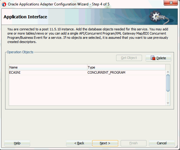 Adapter Configuration Wizard - Application Interface Page