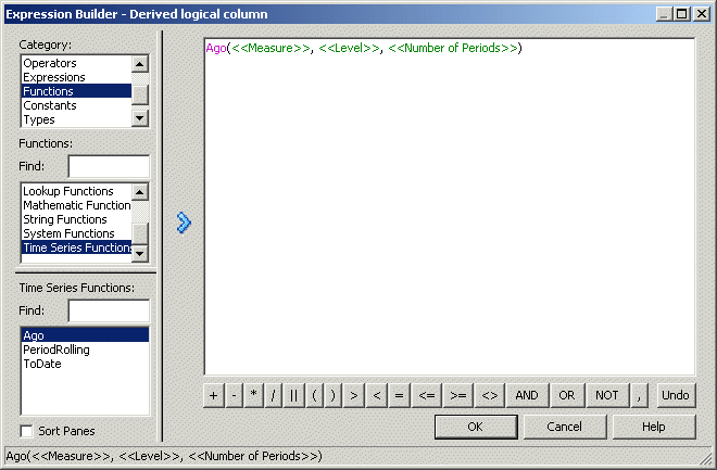 Figure 10-13 shows the AGO function in Expression Builder.
