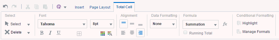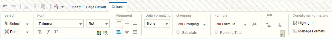 Use the Insert tab to insert report components and page elements. Figure 3-8 shows the Insert tab.