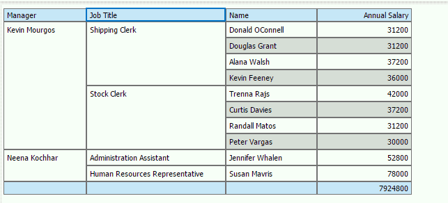 Figure 3-89 A Table Showing Revenue and Cost Data for Each Office