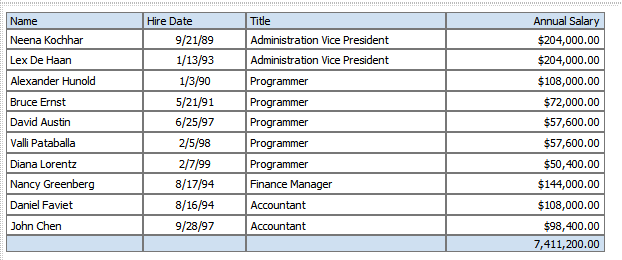 Scrollable tables - Table data can be scrolled while maintaining display of the headers and totals.