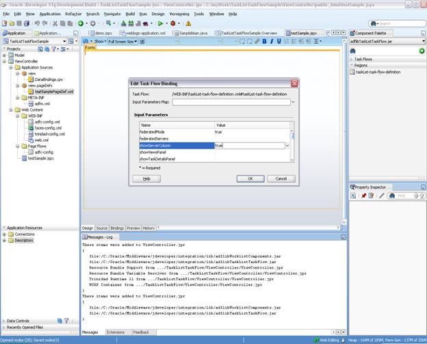 To create an application and embed the Rules task flow in it, follow all the steps of Samples: Customizing ADF Applications with Process Workspace Task Flows except Step 9. This is because rules fields have no parameters.