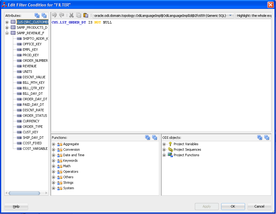 Variables, Sequences, and User Functions that will be used in expressions within your mappings must be created in the project. See Chapter 10, "Creating and Using Procedures, Variables, Sequences, and User Functions" for more information.