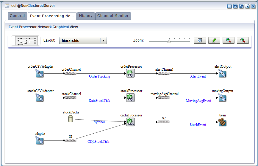 You can use Oracle Stream Analytics Visualizer to monitor any channel stage (stream) of the event processing network (EPN) of an application.