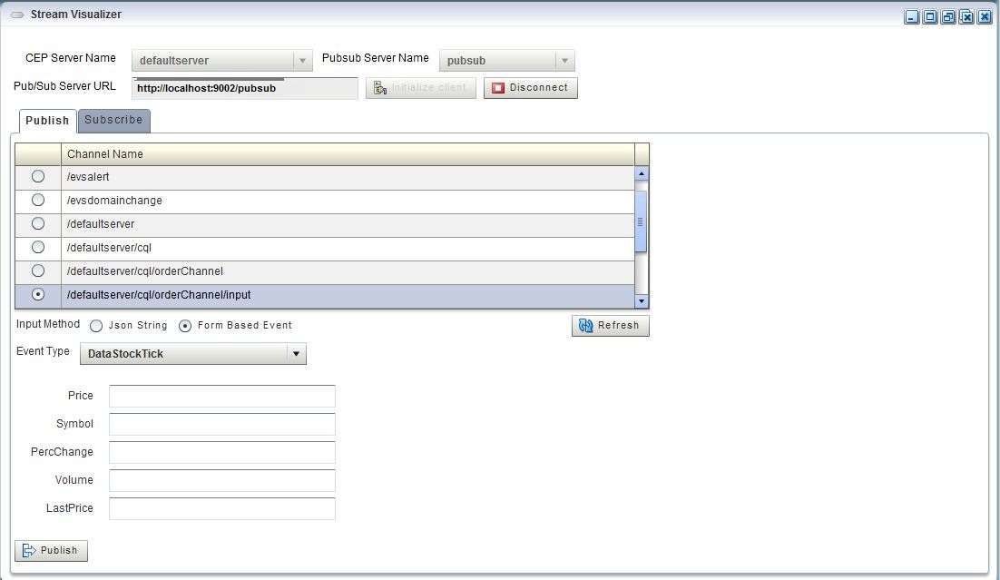 Figure 4-37 Stream Visualizer (ViewStream): Publishing Simple Events