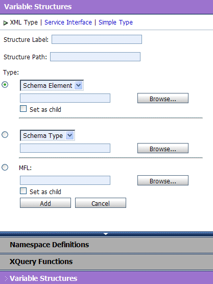 Click Add. The new variable structure body to PO is included under XML Type in the list of variable structures.