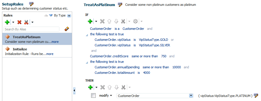 The Oracle Business Rules Editor is a declarative component that can be embedded in any ADF-based web application. The component renders the user interface for rules editing and handles all events associated with rules editing. The Rules Editor uses the Rules SDK2 API to create and edit rules.