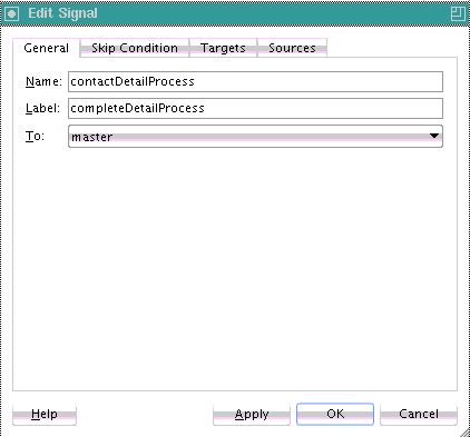 Enter a label name (for this example, beginDetailProcess). This label must match the receive signal activity label you set in the detail process in Step 6.