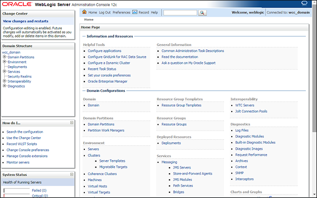 The Oracle WebLogic Server Administration Console is a browser-based user interface that you use to manage a WebLogic Server domain. The Administration Server hosts the Administration Console, which is a Web application accessible from any supported Web browser with network access to the Administration Server.