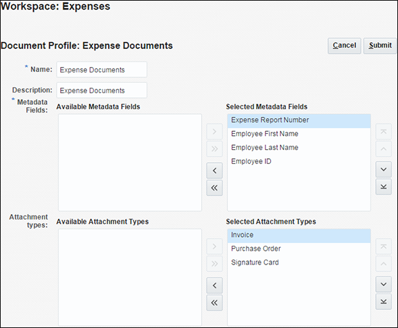 In the Document Profiles field, select the profile you created (for example, Expense Documents).