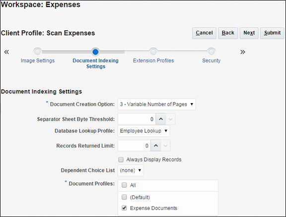 Figure 10-5 Configuring a Client Profile for Capturing Expense Documents