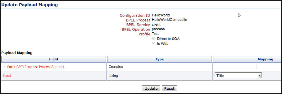 The Update Payload Mapping page displays a form with three columns. Each of the columns is defined in the following table.