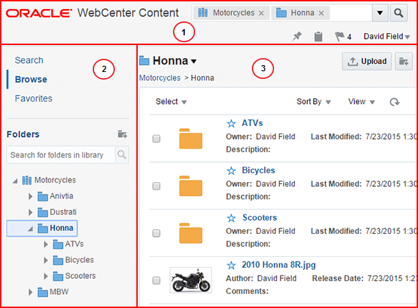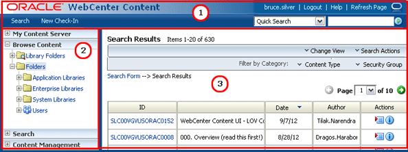 Both default user interfaces used to access Oracle WebCenter Content share common features:
