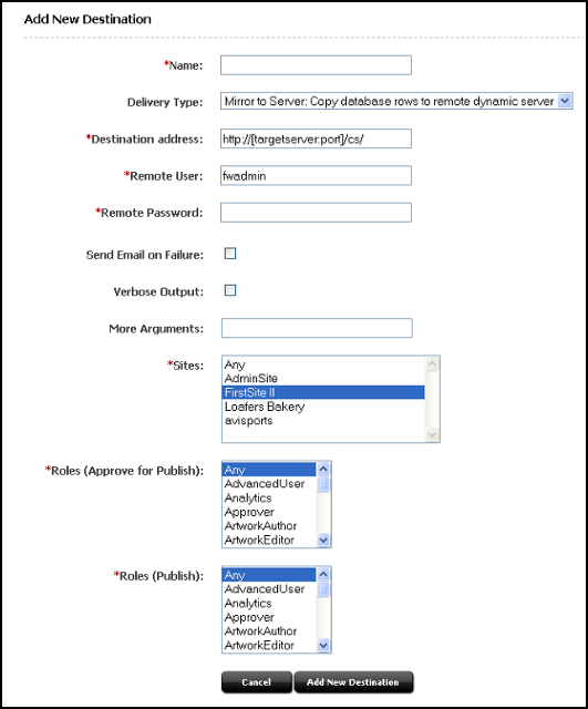 4. Create a Publishing Destination for the destination system that uses the Mirror to Server publishing method.