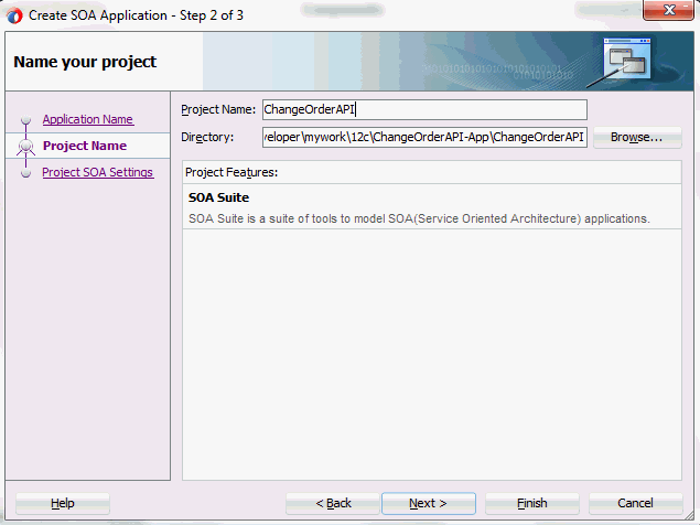 Enter an appropriate name for the project in the Project Name field. For example, ChangeOrderAPI.