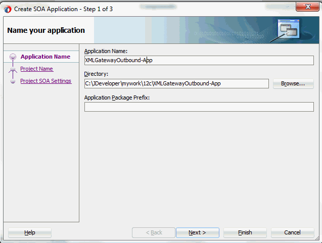 Enter an appropriate name for the project in the Project Name field. For example, POInboundXMLGateway.