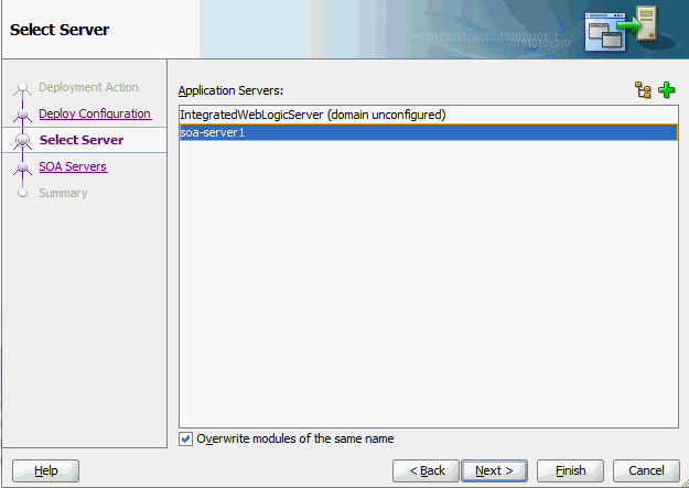 For example, you can select Deploy > XMLGatewayOutbound > soa-server1 to deploy the process if you have the connection set up appropriately.