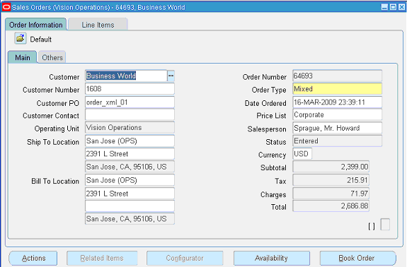 To validate the design-time tasks created earlier, you can log in to Oracle E-Business Suite to manually create and book the order as well as generate the order acknowledgement by submitting a Workflow Background Process concurrent request.