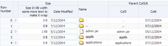 Figure 12-5 shows the tree table from the File Explorer application with the toolbar, menus, and toolbar buttons created using the panelCollection component.