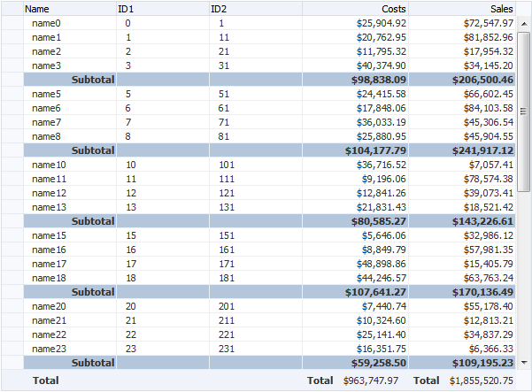Figure 12-7 Hierarchical Data Can be Displayed in Groups