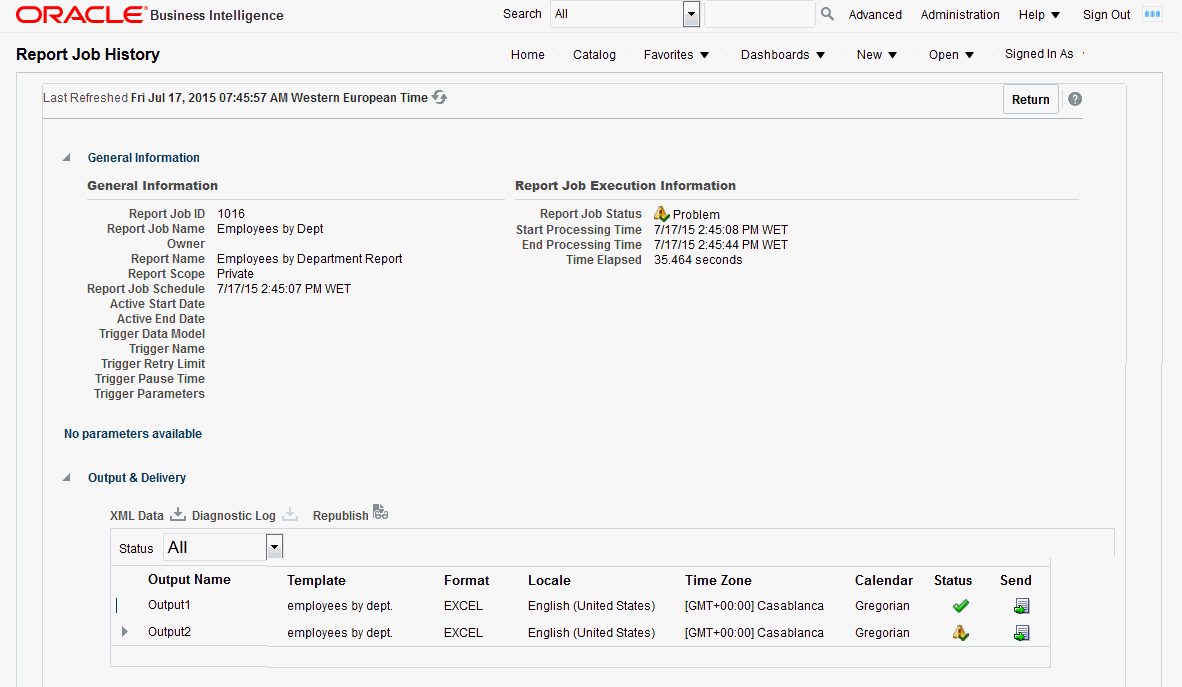 2. To view delivery information for each output, click the expand icon next to the output name.