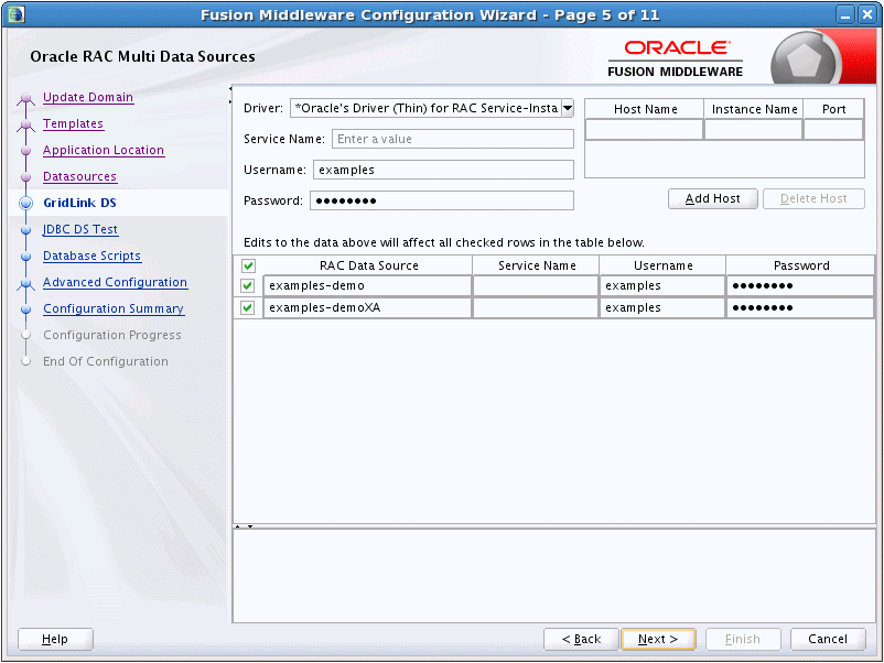 The password that is set here is also used for any JDBC data sources that are defined in the templates you specified when you started the Quick Start Configuration Wizard.
