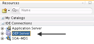 4. Navigate to Resources window > IDE Connections > OEP Server.