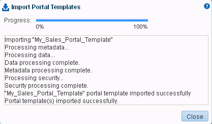 Application specialists (and other users with Portal Templates-Manage All permission) can import portal templates from a portal archive (.par file) into WebCenter Portal.