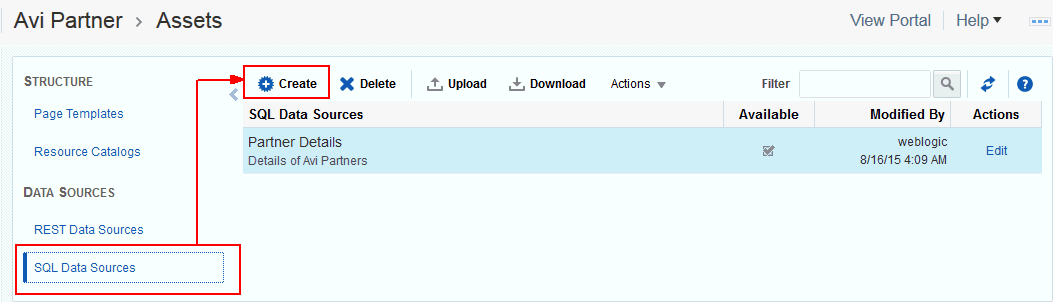 You can create a SQL data source at the application level or at the portal level. Application-level SQL data sources are available for use in all portals, unless the portal has been specifically excluded. Portal-level SQL data sources are available for use only in the portal in which they are created.