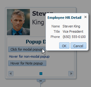 For help with configuring popups, see Declaratively Invoking a Popup. For more information about the query component, see Using the query Component.