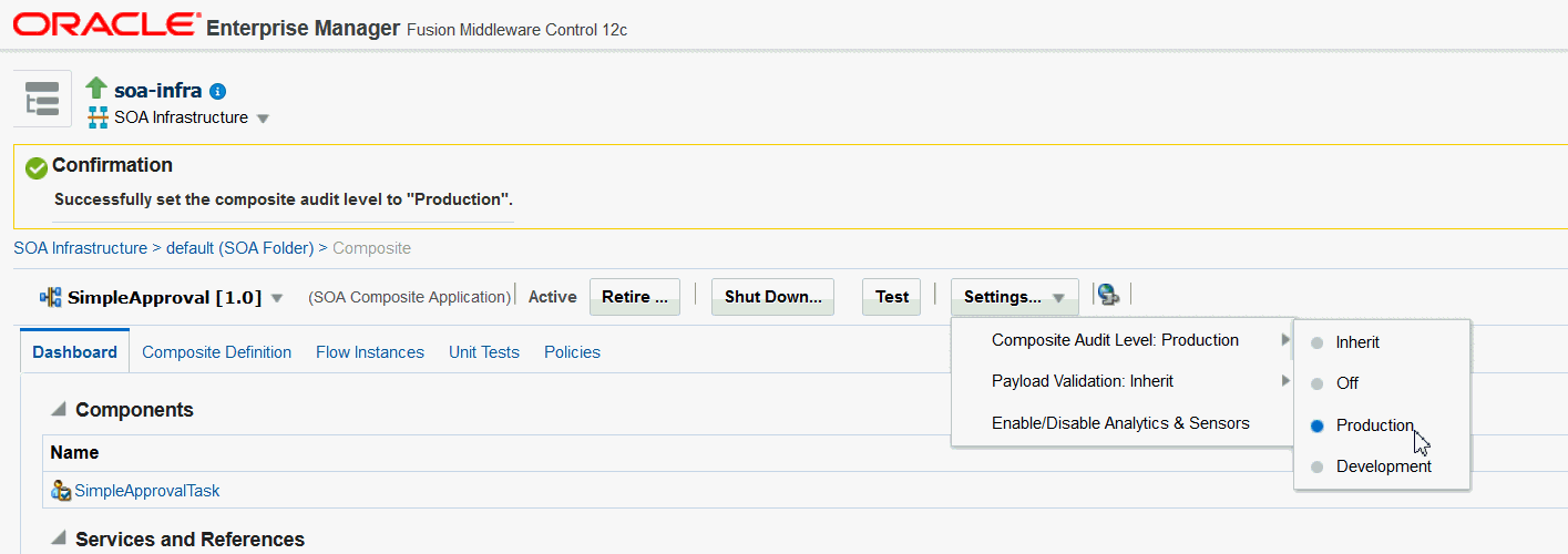 For information about redeployment and undeployment, see Redeploying SOA Composite Applications and Undeploying SOA Composite Applications.