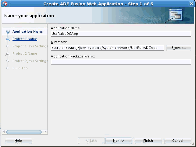 Enter a name for the application in the Application Name field, for example, useRulesDCApp, and click Next as shown in Figure 26-8.