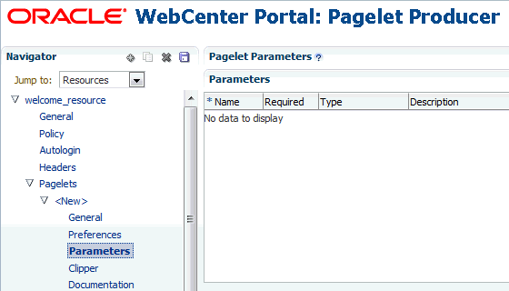 WSRP/JPDK: WSRP or Oracle PDK-Java portlet producers (before you create a resource of this type, register the associated producer as described in Managing the Pagelet Producer in Oracle Fusion Middleware Administering Oracle WebCenter Portal).