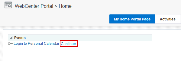 Your portal manager can set up a page to view events in the Home portal, from where you can view your personal events. See Showing Events on a Page in the Home Portal in Oracle Fusion Middleware Building Portals with Oracle WebCenter Portal.