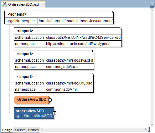 When you service-enable your application module, JDeveloper generates the necessary artifacts comprising: 1) The Java interface defining the service, 2) an EJB 3.0 session bean that implements this Java interface, 3) a WSDL file that describes the service's operations, and (4) XML schema documents (XSD) that defines the service's data structures. The service interface is described for Fusion web application clients in a language-neutral way by the combination of WSDL and XSD.