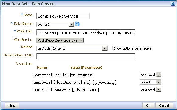 To include parameters for the data set, it is recommended that you define the parameters first, so that they are available for selection when defining the data set. See Adding Parameters and Lists of Values.
